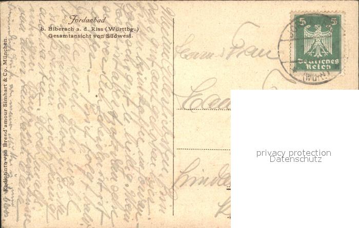 72139235 alte Postkarte Biberach Riss Jordanbad postalisch gelaufen Erhaltung siehe scans KatCode: 11110008426021
