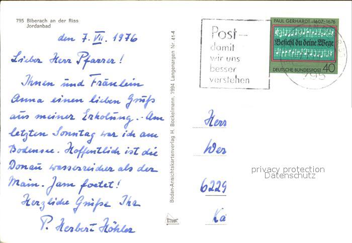 72549448 alte Postkarte Biberach Riss Jordanbad postalisch gelaufen Erhaltung siehe scans [AndreD76 kv022box] KatCode: 11110008426021