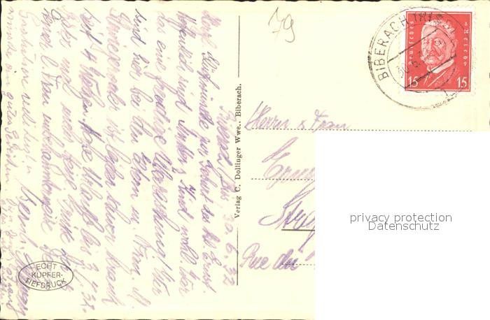 31722410 alte Postkarte Biberach Riss Kapellenplatz postalisch gelaufen Erhaltung siehe scans KatCode: 11110008426021