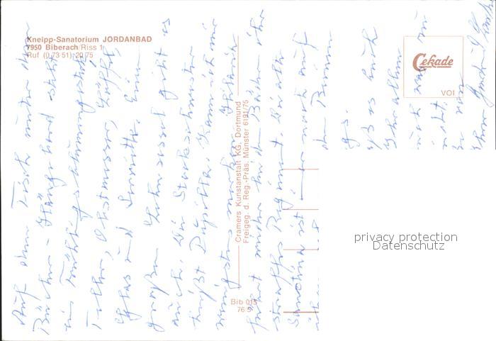72289845 Biberach Riss Kneipp- Sanatorium Jordanbad postalisch nicht gelaufen Erhaltung siehe scans KatCode: 11110008426021