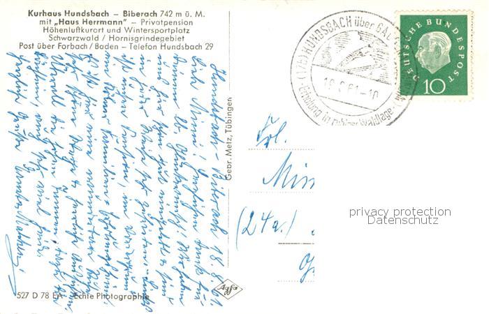 73778102 Biberach Riss Kurhaus Hundsbach mit Haus Herrmann postalisch gelaufen Erhaltung siehe scans [WerneD78] alte Postkarte Wern Katcode 11110008426021