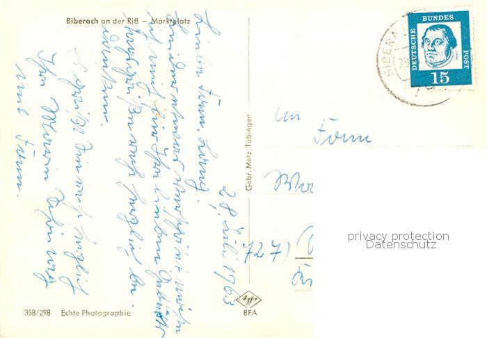 73833633 Biberach Riss Marktplatz postalisch gelaufen Erhaltung siehe scans [WerneD78] alte Postkarte Wern Katcode 11110008426021