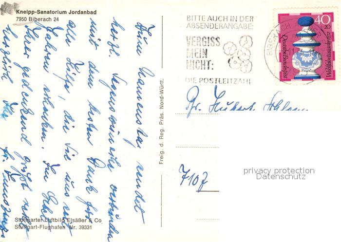 73031388 alte Postkarte Biberach Riss Sanatorium Jordanbad Fliegeraufnahme postalisch gelaufen Erhaltung siehe scans [KathaD81] KatCode: 11110008426021