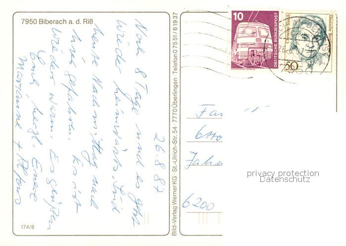 73190198 alte Postkarte Biberach Riss Stadthalle Schwimmbad postalisch gelaufen Erhaltung siehe scans [NatalD47] KatCode: 11110008426021