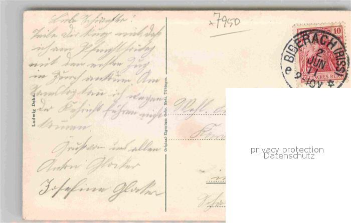 42690247 alte Postkarte Biberach Riss Stadtpfarrkirche Weisser Turm Ulmer Tor Gigelturm postalisch gelaufen Erhaltung siehe scans [AndreD76] KatCode: 11110008426021