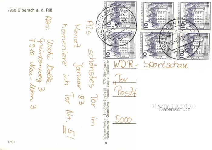 72752847 alte Postkarte Biberach Riss Stadtturm Kirche Schloss Brunnen postalisch gelaufen Erhaltung siehe scans [KathaD81] KatCode: 11110008426021