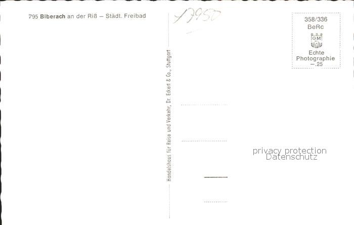 41815243 Biberach Riss Staedtisches Freibad Schwimmbad postalisch nicht gelaufen Erhaltung siehe scans KatCode: 11110008426021