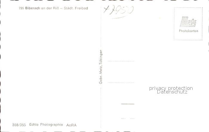 41815242 Biberach Riss Staedtisches Freibad Schwimmbad postalisch nicht gelaufen Erhaltung siehe scans KatCode: 11110008426021