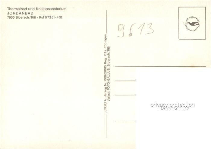 73780252 Biberach Riss Thermalbad und Kneippsanatorium Fliegeraufnahme postalisch nicht gelaufen Erhaltung siehe scans [WerneD78] Wern Katcode 11110008426021