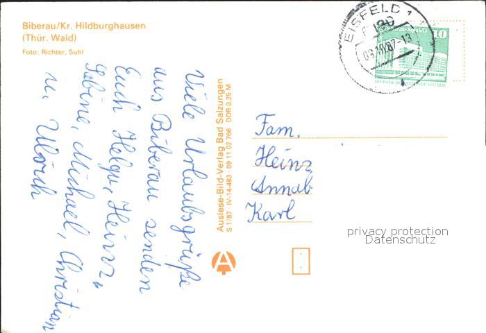 72337029 alte Postkarte Biberau Gesamtansicht Thueringer Wald postalisch gelaufen Erhaltung siehe scans KatCode: 11110016069042