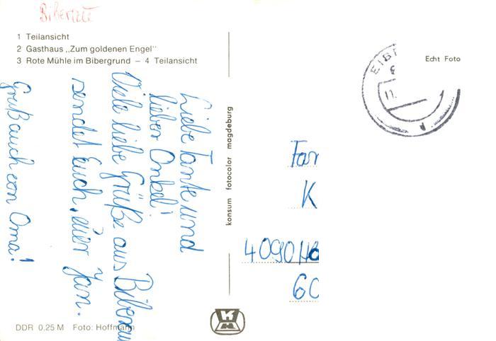 73892455 alte Postkarte Biberau Schleusegrund Thueringen Teilansicht Gasthaus Zum goldenen Engel Rote Muehle im Bibergrund Teilansicht postalisch gelaufen Erhaltung siehe scans [WerneD78] KatCode: 11110016069042