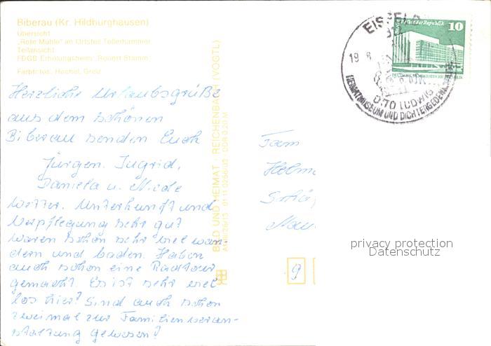 72332139 alte Postkarte Biberau uebersicht Rote Muehle OT Tellerhammer FDGB Erholungsheim postalisch gelaufen Erhaltung siehe scans KatCode: 11110016069042