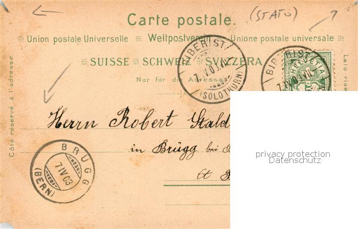 13559813 alte Postkarte Biberist Panorama Neues Schulhaus Papierffabrik Bieberist Parquetterie postalisch gelaufen Erhaltung siehe scans [WerneD78] KatCode: 11470180550512