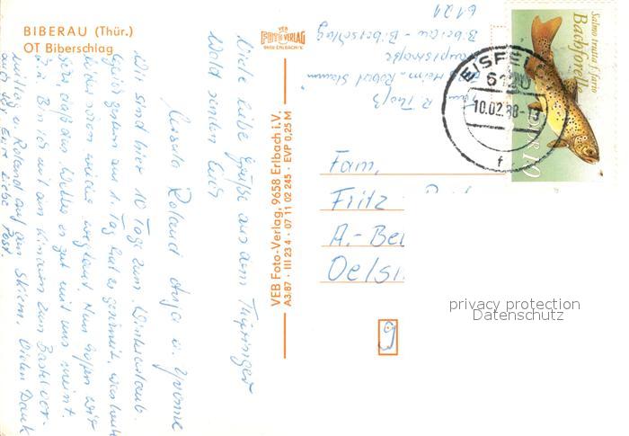 73612717 alte Postkarte Biberschlag FDGB Erholungsheim Robert Stamm postalisch gelaufen Erhaltung siehe scans [WerneD78] KatCode: 11110016069042