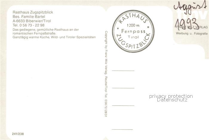 73339394 Biberwier Tirol Gasthaus Zugspitzblick postalisch nicht gelaufen Erhaltung siehe scans [LiesaD40] KatCode: 11390331070803