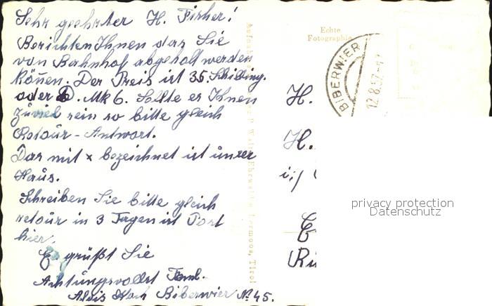 72505603 alte Postkarte Biberwier Tirol Wanneck postalisch gelaufen Erhaltung siehe scans KatCode: 11390331070803