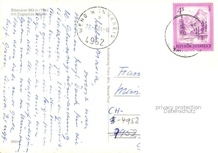 73018728 alte Postkarte Biberwier Tirol Zugspitze postalisch gelaufen Erhaltung siehe scans [NatalD47] KatCode: 11390331070803