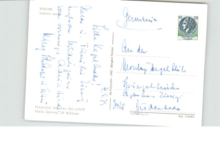 Bibione Fliegeraufnahme postalisch nicht gelaufen