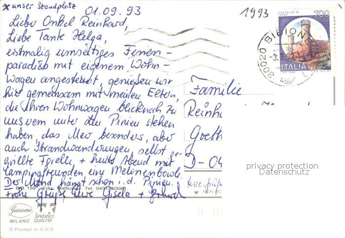 old postcard Bibione Fliegeraufnahme Pineta postalisch gelaufen Erhaltung siehe scans