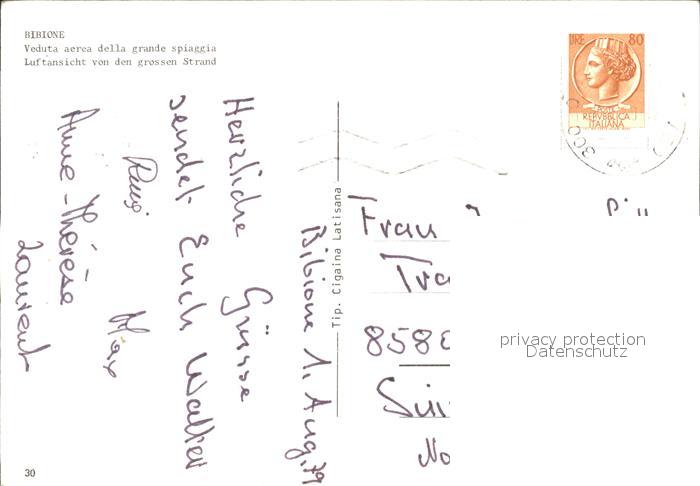 old postcard Bibione Fliegeraufnahme Strand spiaggia postalisch gelaufen Erhaltung siehe scans
