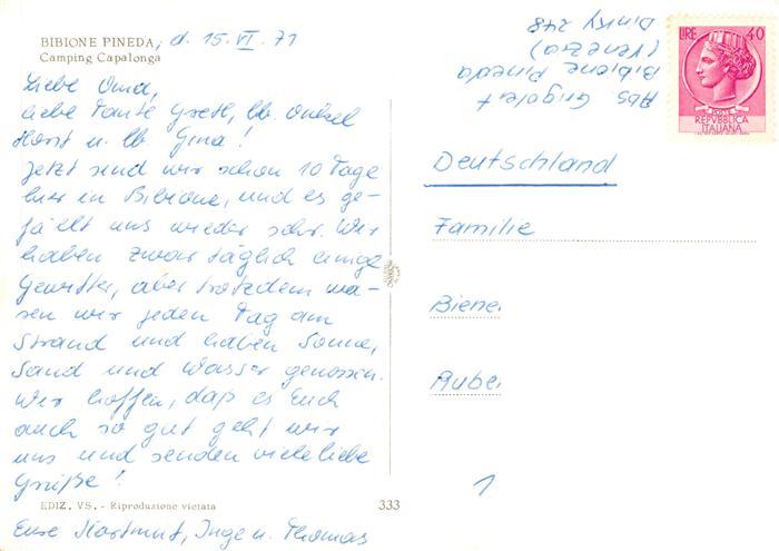 old postcard Bibione IT Camping Capalonga postalisch gelaufen Fliegeraufnahme Erhaltung siehe scans [FriedD77]