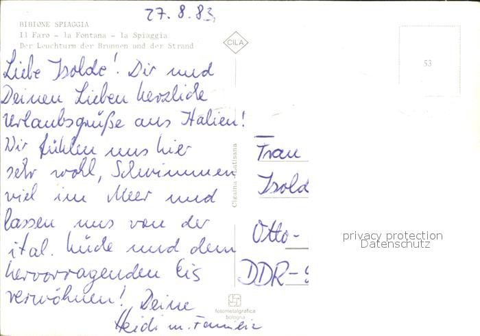 Bibione Leuchtturm Strand Fontaene Sonnenuntergang postalisch nicht gelaufen Erhaltung siehe scans