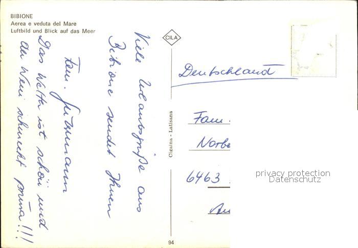 old postcard Bibione Luftbild Blick auf das Meer postalisch gelaufen Erhaltung siehe scans