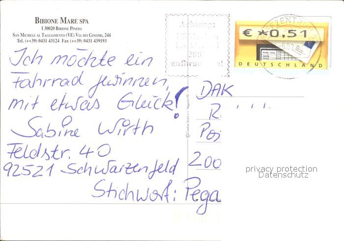 old postcard Bibione Mare Spa Tridente Capalonga Portobaseleghe postalisch gelaufen Erhaltung siehe scans