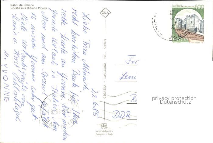 old postcard Bibione Mole Daemmerung Wasserski Strand Restaurant Huetten postalisch gelaufen Erhaltung siehe scans