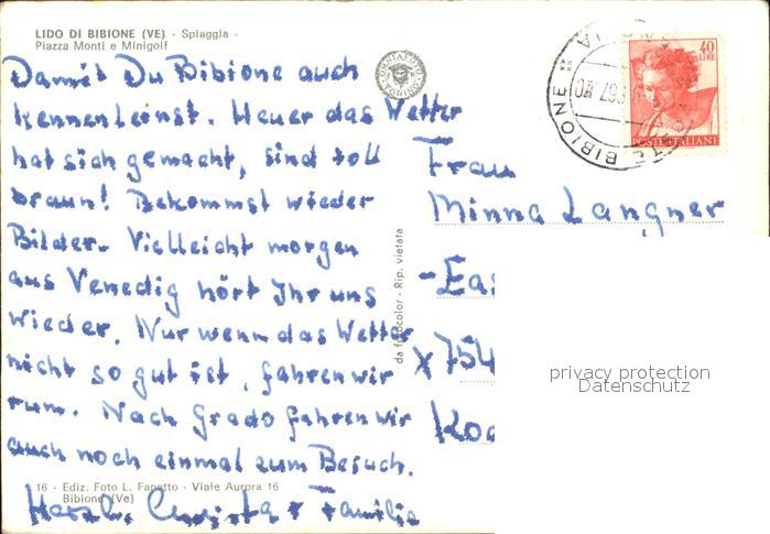 old postcard Bibione Piazza Monti Minigolf Strand postalisch gelaufen Erhaltung siehe scans