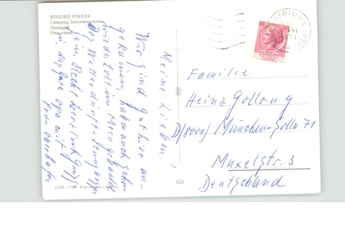 old postcard Bibione Pineda Camping Spiaggia postalisch gelaufen