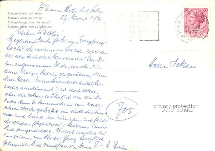 old postcard Bibione Pineda dall aereo postalisch gelaufen Erhaltung siehe scans