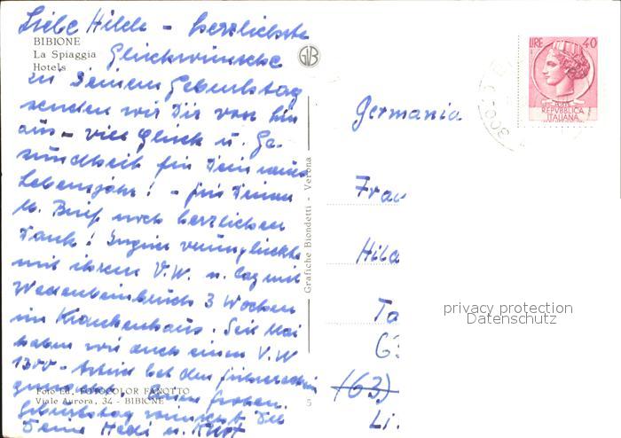 old postcard Bibione Strand Hotels postalisch gelaufen Erhaltung siehe scans
