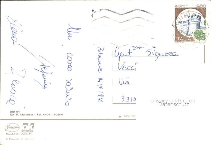 old postcard Bibione Strandpartien Panorama Brunnen Sonnenuntergang postalisch gelaufen Erhaltung siehe scans