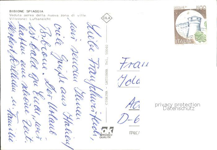 old postcard Bibione Veduta aerea della nuova zona di ville Nationalflaggen postalisch gelaufen Erhaltung siehe scans