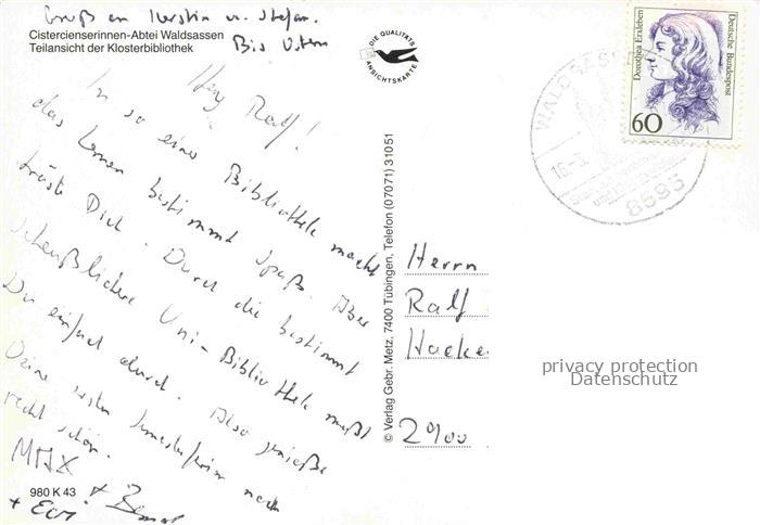 74154646 alte Postkarte Bibliothek Library Bibliotheque– Cistercienserinnen Abtei Waldsassen postalisch gelaufen Erhaltung siehe scans [SanaeD93] KatCode: 22140000000700