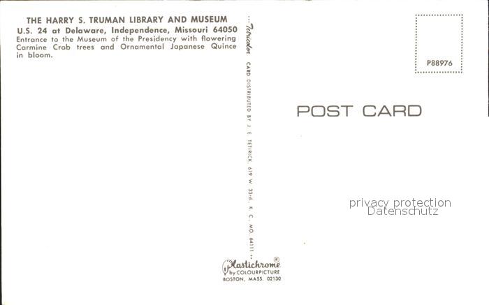 Bibliothek Library Museum Harry S. Truman Independence Missouri postalisch nicht gelaufen Erhaltung siehe scans