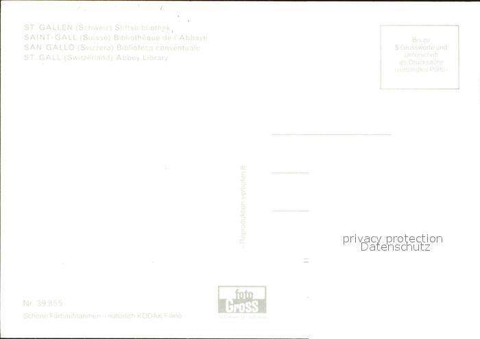 Bibliothek Library St. Gallen Stiftsbibliothek postalisch nicht gelaufen Erhaltung siehe scans