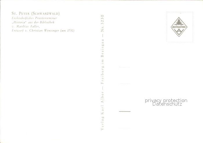 Bibliothek Library St. Peter Schwarzwald Priesterseminar Historia Matthias Faller postalisch nicht gelaufen Erhaltung siehe scans