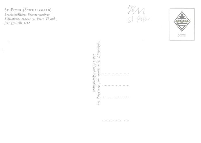 74036112 Bibliothek Library St. Peter Schwarzwald postalisch nicht gelaufen Erhaltung siehe scans [IrynaD87] KatCode: 22140000000700