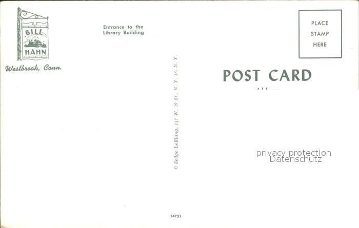 Bibliothek Library Westbrook Connecticut postalisch nicht gelaufen Erhaltung siehe scans