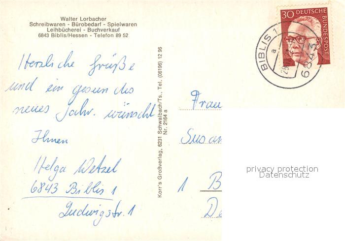 73125499 alte Postkarte Biblis Rathaus Historisches Fachwerkhaus Kinderspielplatz Badesee Ehrenmal Darmstaedter Strasse postalisch gelaufen Erhaltung siehe scans [FriedD77] KatCode: 11110006431003