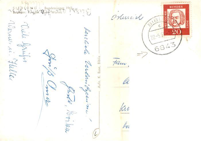 73873743 alte Postkarte Biblis Teilansichten Kleinsiedlung Huehner Kinderspielplatz Bundessieger Schoenste Kleinsiedlung der Bundesrepublik 1962 postalisch gelaufen Erhaltung siehe scans [FriedD77] KatCode: 11110006431003