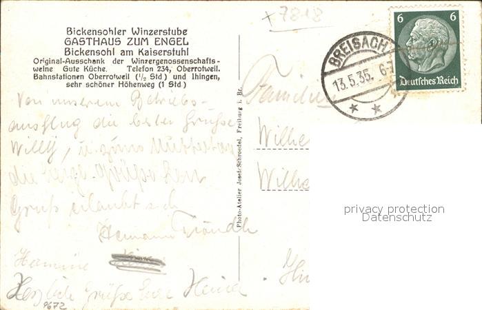 31735034 alte Postkarte Bickensohl Gasthaus zum Engel Winzerstube postalisch gelaufen KatCode: 11110008315133
