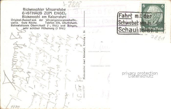 31735035 alte Postkarte Bickensohl Gasthaus zum Engel Winzerstube postalisch gelaufen Erhaltung siehe scans KatCode: 11110008315133