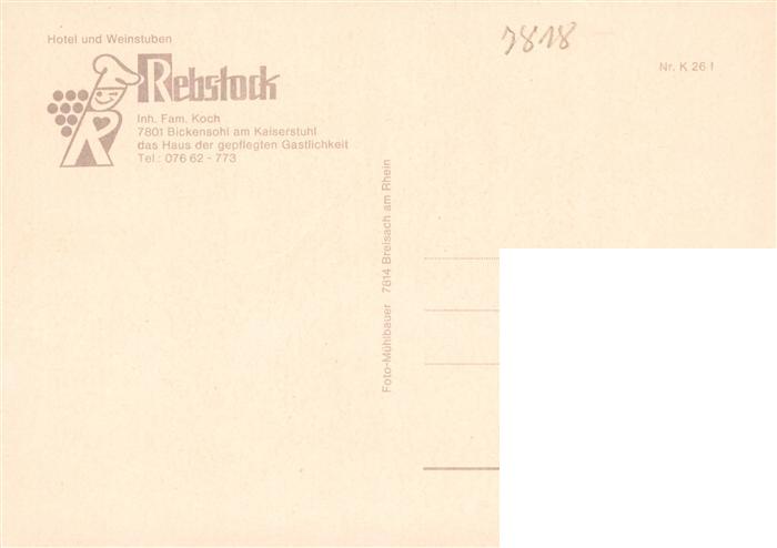 73929070 Bickensohl Vogtsburg Kaiserstuhl Panorama Hotel und Weinstuben Rebstock Weinpresse postalisch nicht gelaufen Erhaltung siehe scans [WerneD78] KatCode: 11110008315133