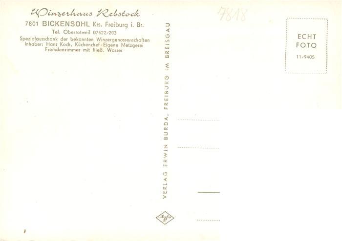73929109 Bickensohl Vogtsburg Kaiserstuhl Winzerhaus Rebstock postalisch nicht gelaufen Erhaltung siehe scans [WerneD78] KatCode: 11110008315133