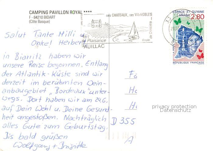 13039837 carte postale Bidart Camping Pavillon Royal Fliegeraufnahme postalisch gelaufen Erhaltung siehe scans [WerneD78] KatCode: 11170064164125