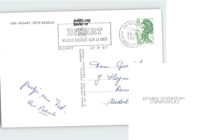 12225328 carte postale Bidart Cote Basque postalisch gelaufen Erhaltung siehe scans KatCode: 11170064164125