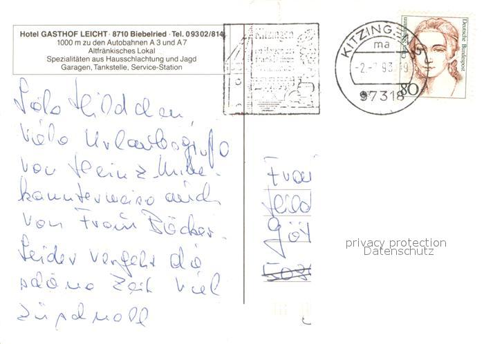 73654033 alte Postkarte Biebelried Hotel Gasthof Leicht Gastraeume Bar postalisch gelaufen Erhaltung siehe scans [WerneD78] KatCode: 11110009675113